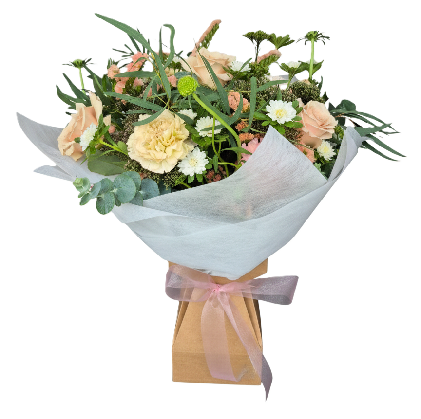 Please Note: We will do our best to create a similar styled flower arrangement as pictured, although colours and exact flowers/greenery will vary depending on seasonal availability. We will substitute this for a similar item in shape, style, and color to ensure fresh, quality delivery. Vases, boxes, bears, hamper items and chocolates will vary from pictured items. Every bouquet is wet wrapped ensure the utmost freshness.